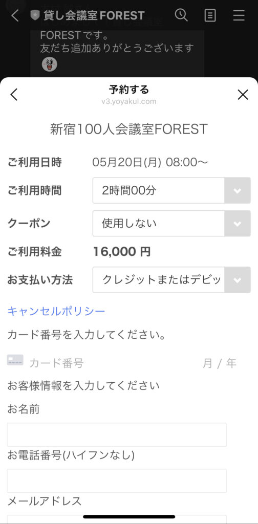 ③お名前・連絡先・クレジット情報を入力し、予約します。