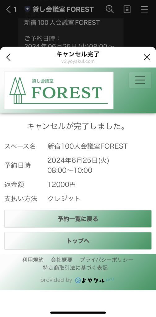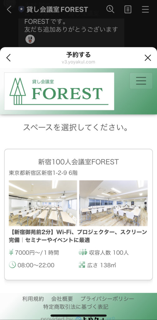 ④予約が完了すると、予約内容・ご利用案内・アクセス・鍵の開け方などの詳細が書かれてるメッセージが届くので、それを確認します。