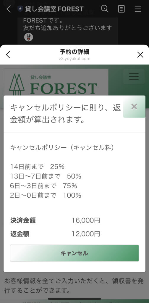 キャンセルポリシーに基づき、予約日の7日前からキャンセル料・変更料が発生しますので、予めご了承ください。